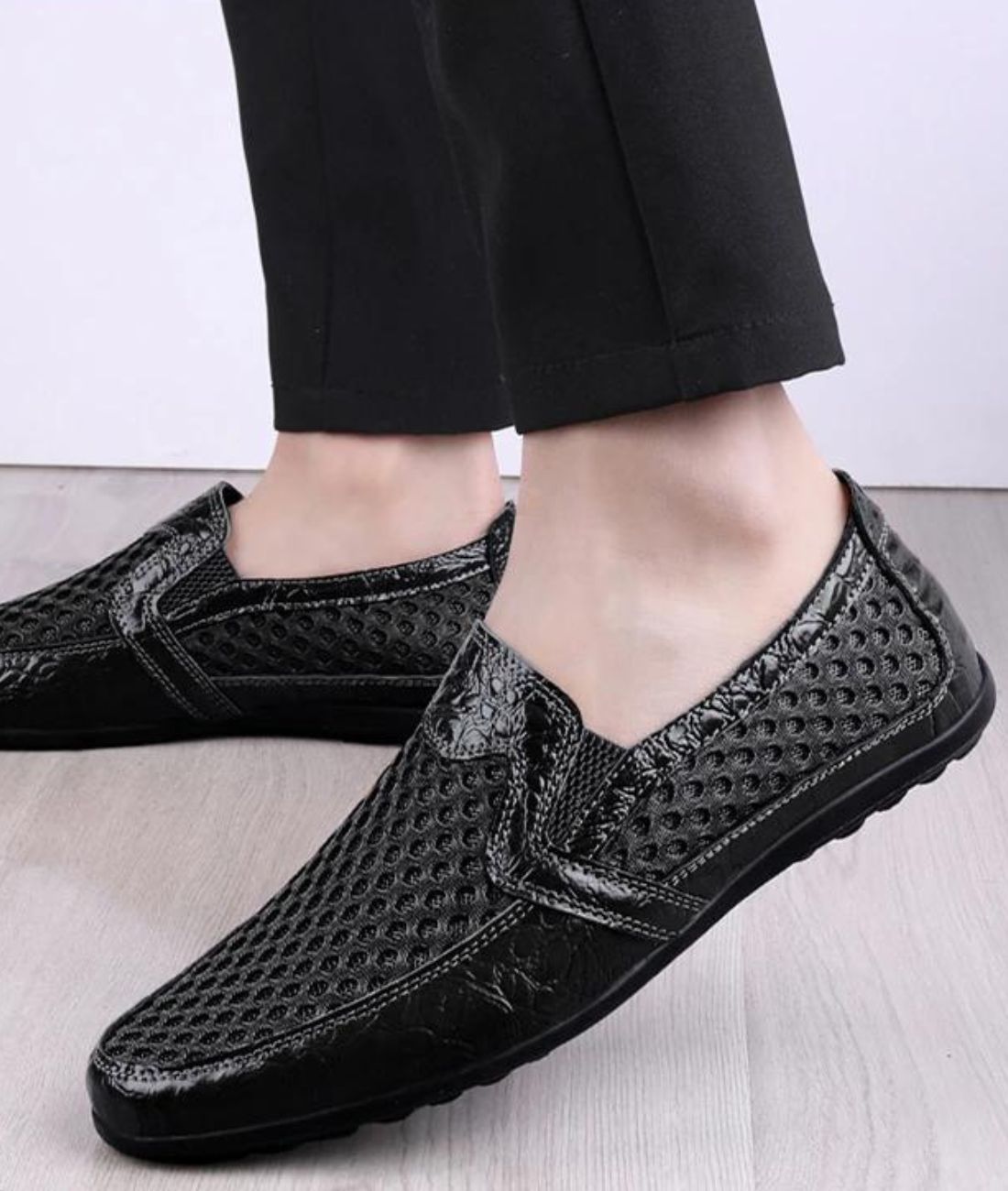 Unsere orthopädischen Mokassins aus atmungsaktivem Mesh in Schwarz> Farbe> sind so konzipiert, dass sie außergewöhnlichen Komfort bieten und gleichzeitig elegant bleiben. Dank ihres modernen und praktischen Designs sind diese Mokassins eine echte Bereicherung für Ihre Garderobe.