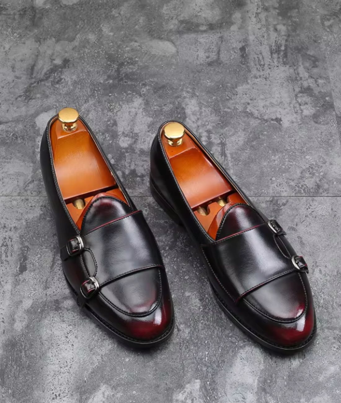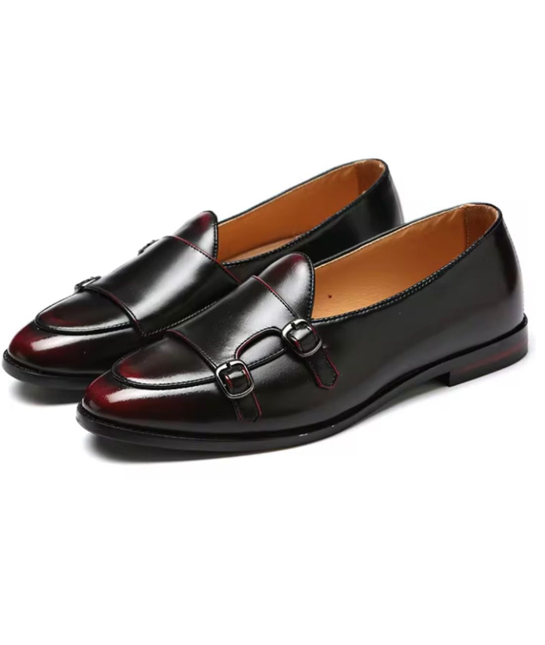 Erweitern Sie Ihren Stil mit eleganten schwarzen und roten Slippern.