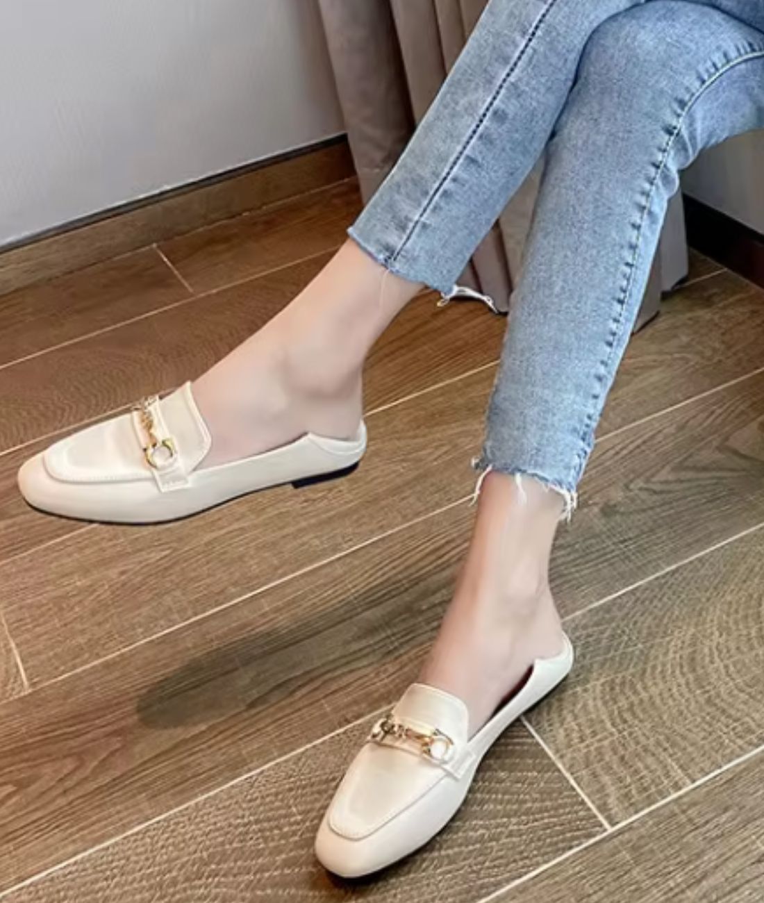 Sie sind zart Der cremige Beigeton verkörpert moderne Eleganz, während die quadratische Spitze einen modernen Touch verleiht. Ein schimmerndes Silberstück ziert diese Mokassins und verleiht ihm eine dezente Glanznote, die die Feinheit des Modells hervorhebt.