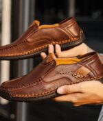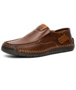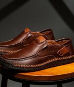 Υιοθετήστε ένα εκλεπτυσμένο στυλ με αυτά τα ανδρικά loafers σε χρώμα κονιάκ, ιδανικά για τις ζεστές εποχές. Αυτά τα παπούτσια συνδυάζουν άνεση και κομψότητα, αποτίοντας φόρο τιμής στα κλασικά μοκασίνια χάρη στο σχεδιασμό τους που εμπνέεται από τα παπούτσια σκαφών.