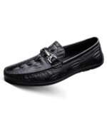 Elegance and Comfort: Black Faux Snake Leather Loafers for Men