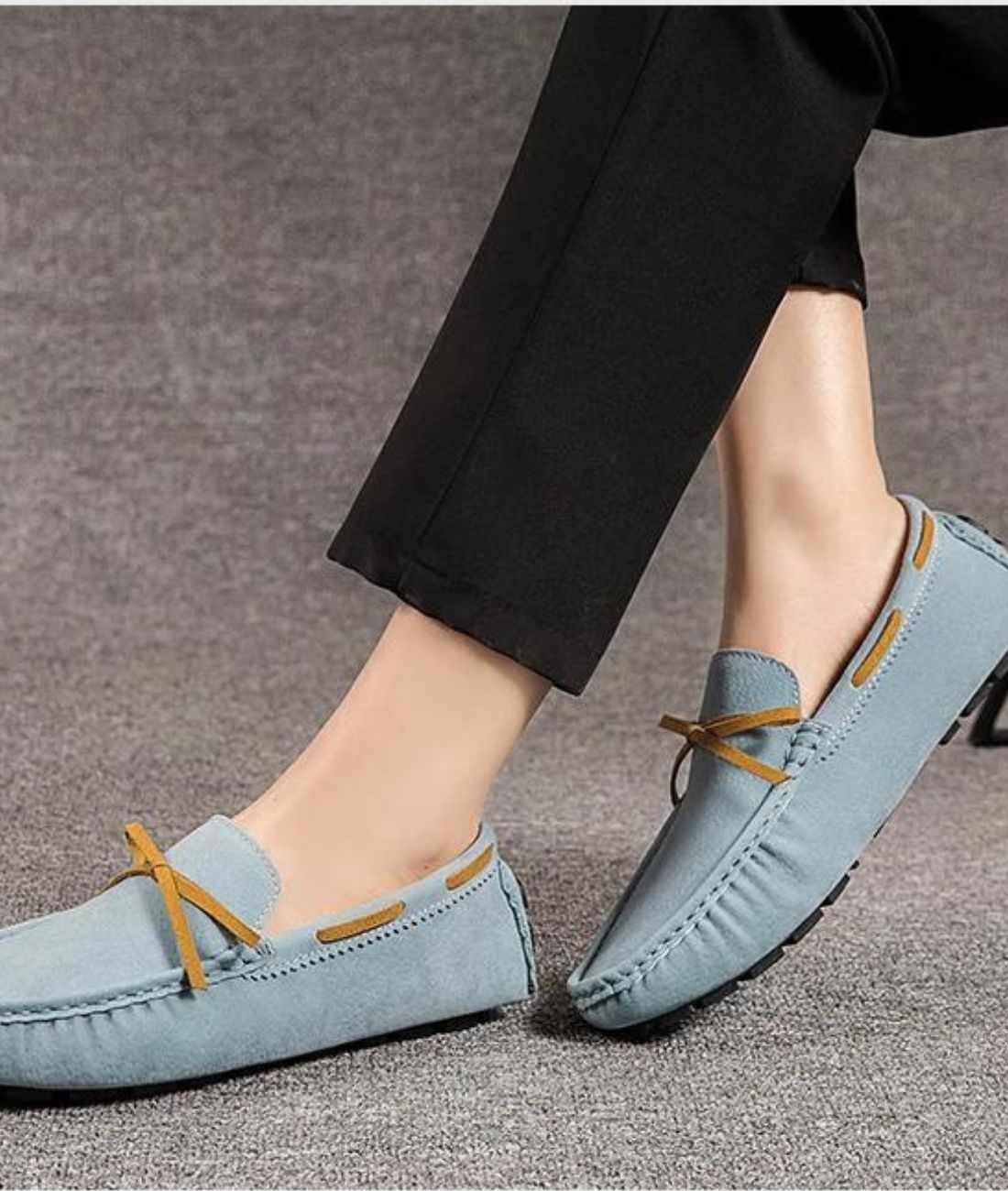 Summer Elegance: Sky Blue Suede Loafers for Men