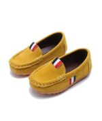 Discover this charming pair of dark yellow suede moccasins, ideal for your child’s first steps. Designed for little boys and girls, this shoe combines classic style and optimal comfort, perfect for accompanying your baby on their daily adventures.