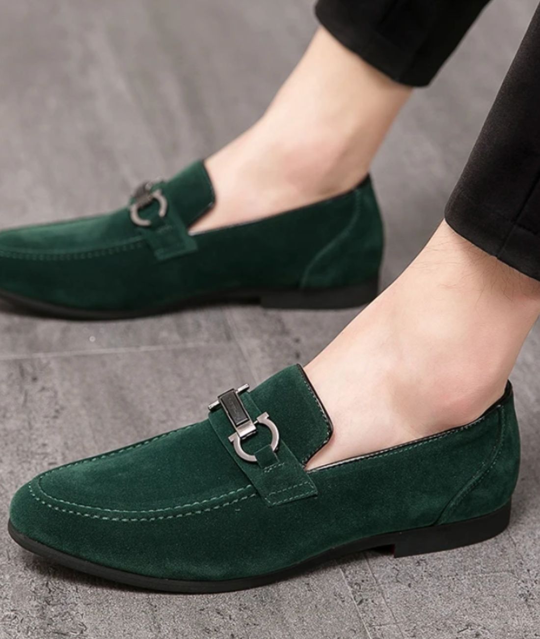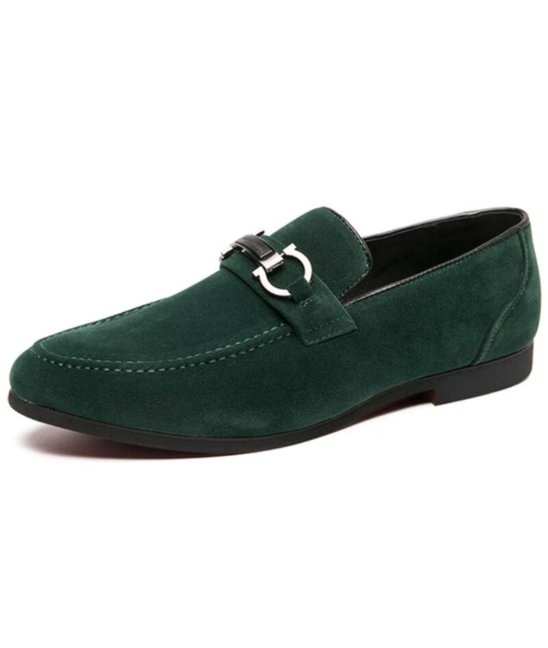 Tutustu miesten mokkanahkaisten loaferien hienostuneeseen malliin, joka on täydellinen tuomaan vaatekaappiisi tyylikkyyttä. Nämä kengät erottuvat männynvihreästä väristään ja terävästä kärjestään, jotka tarjoavat maskuliinisen ja tyylikkään ilmeen.