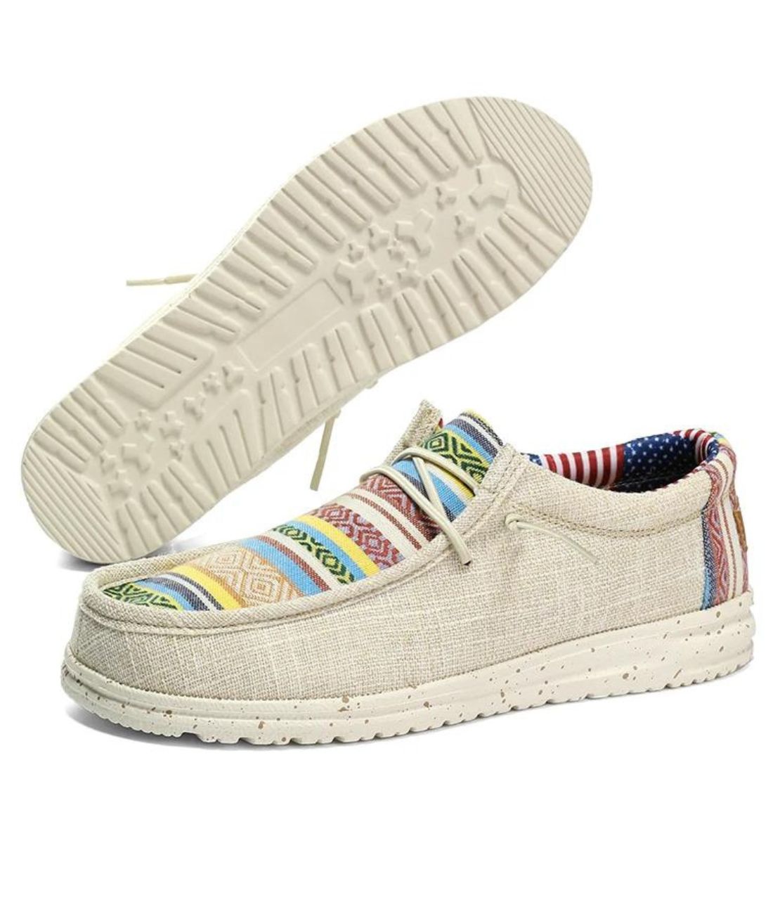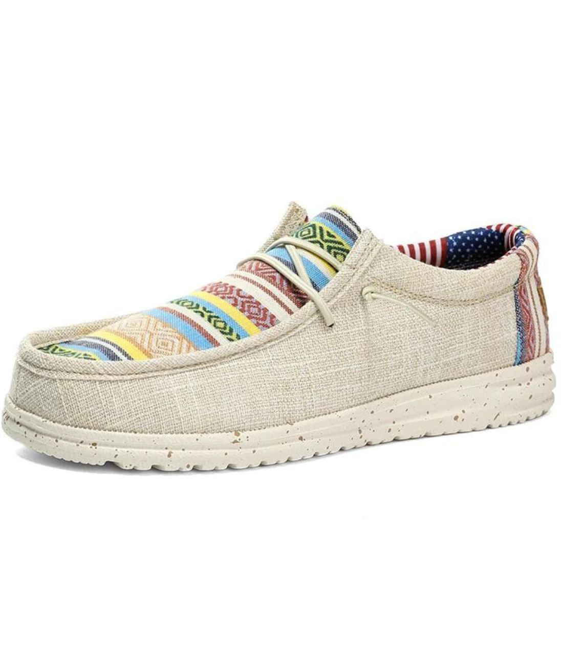Ontdek dit model bootmocassin van ivoorkleurig katoenen canvas, een neutrale kleurkeuze die past bij een breed assortiment van herenoutfits. Dit model valt op door zijn veelkleurige uitstraling op het bord, waardoor je stijl een speels en origineel tintje krijgt. Met een kleurenpalet variërend van hemelsblauw tot rood, bordeaux en geel, voegen deze zomerschoenen een vleugje kleur toe aan je jeans, shorts of elke andere favoriete outfit.