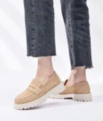Uitgerust met een gekerfde zool met een platform van 4 cm bieden deze mocassins uitstekende ondersteuning en goede grip op alle oppervlakken. Bovendien slankt ze je figuur op elegante wijze af, waardoor een vleugje subtiele gratie aan je uiterlijk wordt toegevoegd.