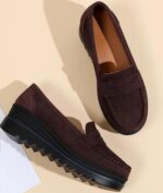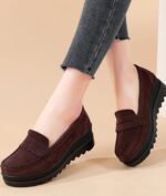 Kies een chique en tijdloze look met onze loafers met sleehak voor dames, ontworpen om stijl en robuustheid te combineren. Deze schoenen zijn gemaakt van bruin echt suèdeleer en voelen zacht, zijdeachtig aan, waardoor je garderobe een vleugje luxe krijgt.