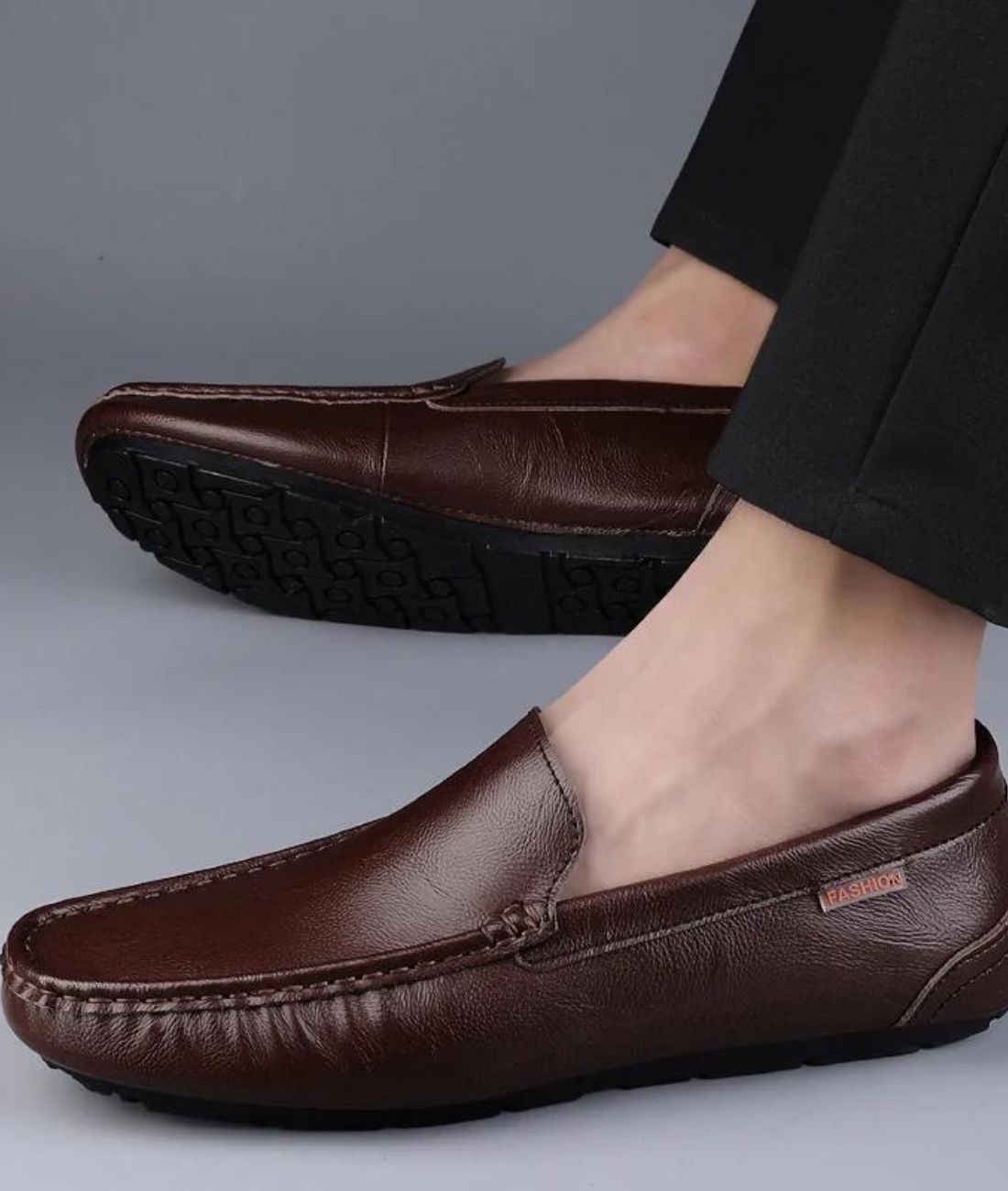 Deze bruinleren loafers zijn ontworpen als aanvulling op de herenschoenen kledingkast met verfijning. De platte rubberen zool biedt optimale bescherming en meer comfort, terwijl het ademende leer zorgt voor een uitstekende regeling van de temperatuur van je voeten. Deze schoenen zijn gemakkelijk aan te trekken en ideaal voor al uw uitstapjes, zowel in de stad als op vakantie.