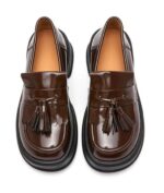 Ontdek een paar loafers voor dames dat elegantie en moderniteit combineert. Deze mocassins zijn gemaakt van echt leer en vallen op door hun glans en verfijnde stijl. Hun ontwerp bevat een dubbele bruine kwast aan de bovenkant, waardoor een perfecte harmonie ontstaat met de hoofdkleur van deze stadsschoen. De 5 cm dikke zool biedt niet alleen een verfijnde uitstraling, maar ook een slank silhouet, zeer gewaardeerd door vrouwen.
