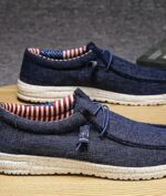 Elegantie en veelzijdigheid: marineblauwe denim loafers voor heren