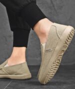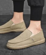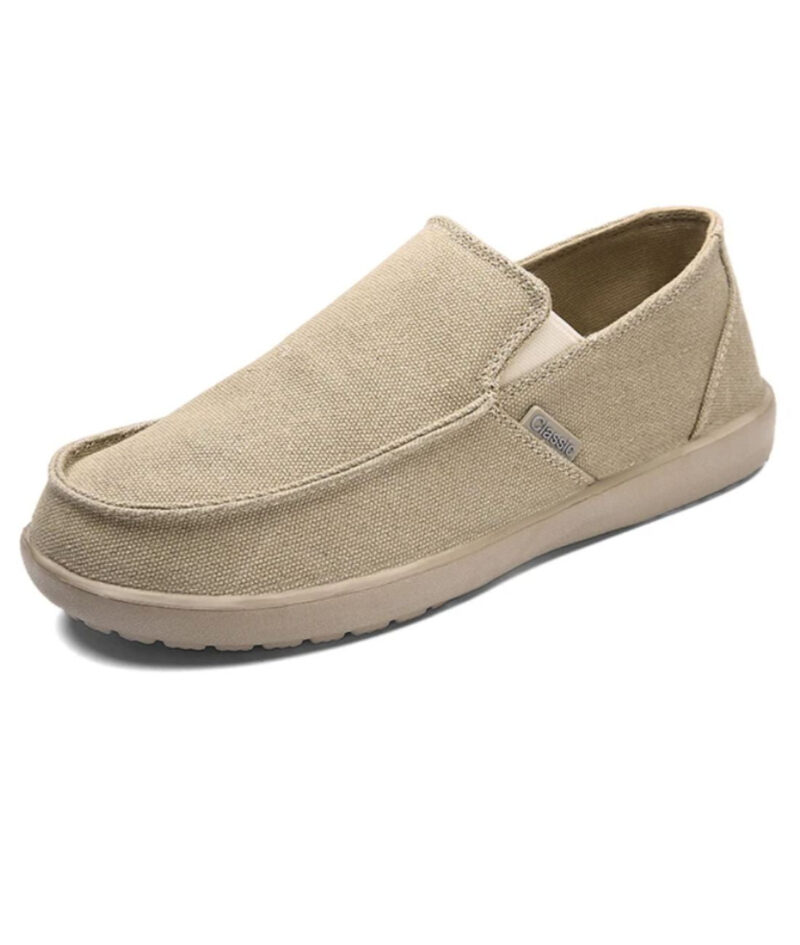 Ontdek onze zandbeige canvas loafers, speciaal ontworpen om onvergelijkbare flexibiliteit en optimale ondersteuning bij elke stap. Deze herenmocassins zijn perfect voor dagen buitenshuis en combineren een stijlvolle esthetiek met uitzonderlijke functionaliteit.