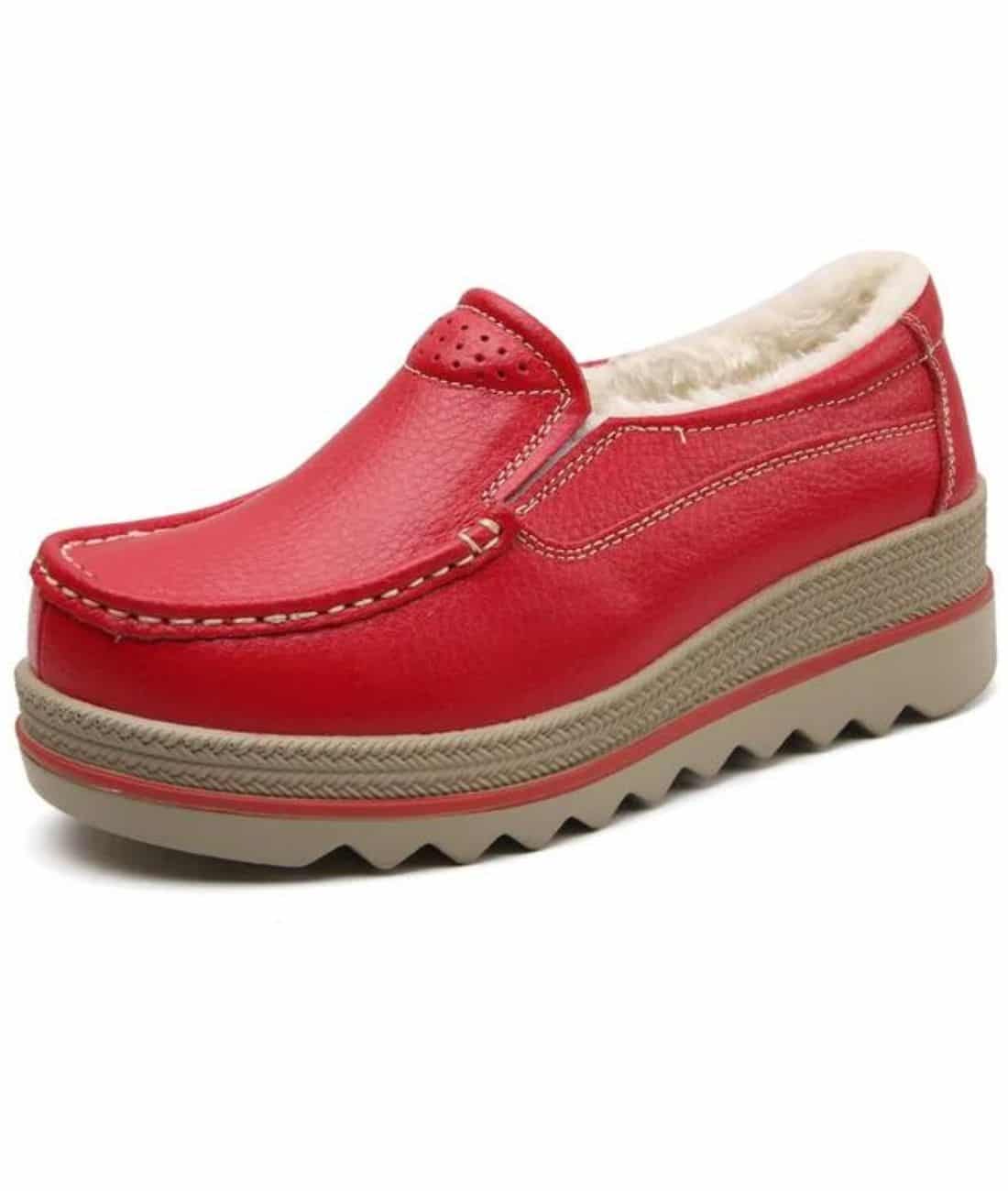 Houd je voeten warm deze winter met onze felrode orthopedische mocassin!