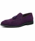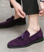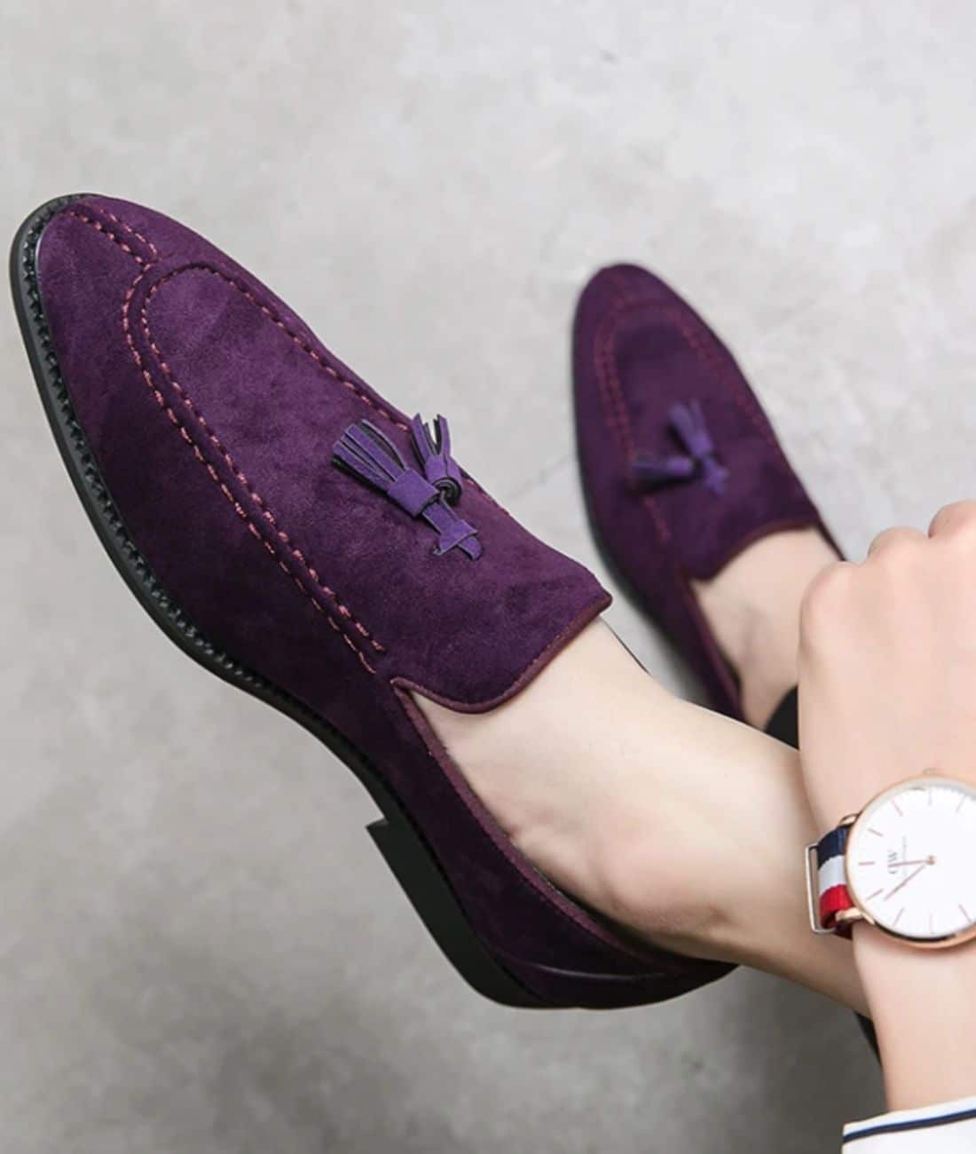 Ontdek onze mocassins in paars suède, een paar herenschoenen die originaliteit belichamen , ontspanning en ongeëvenaarde elegantie. Deze loafers zijn voorzien van leren kwastjes die subtiel onder de tong zijn geplaatst en voegen een uniek tintje toe aan je outfit, waardoor deze zowel modern als verfijnd is. Het dieppaarse van deze schoenen is een opvallende kleur waarmee mannen hun onderscheidende karakter kunnen benadrukken.