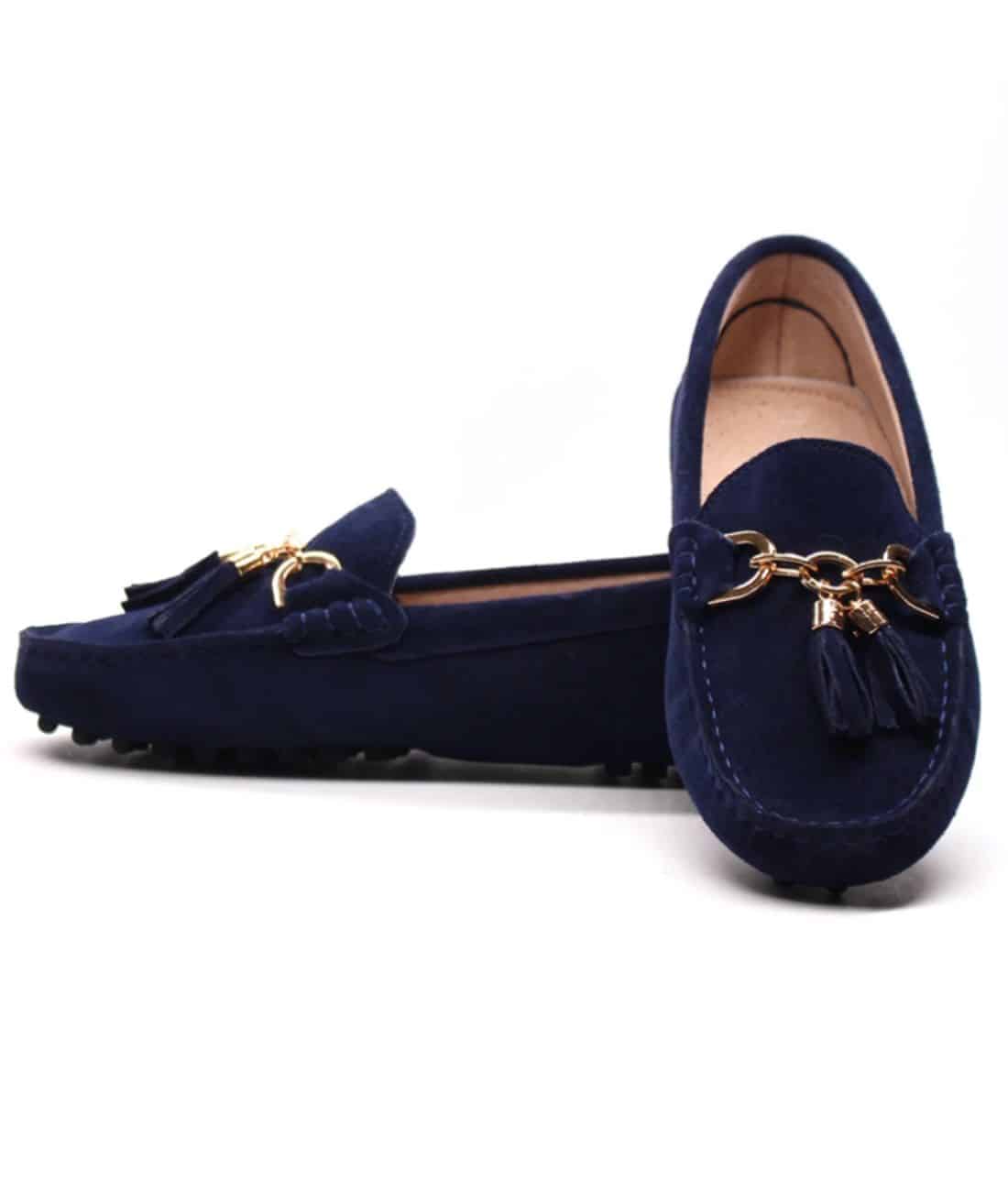 Elegantie en comfort met onze marineblauwe suède loafers voor dames