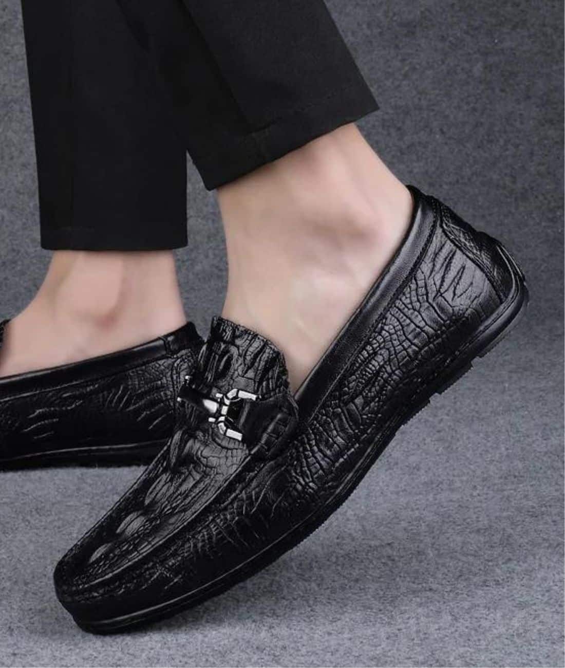 Elegantie en comfort: zwarte instappers van imitatieslangenleer voor heren
