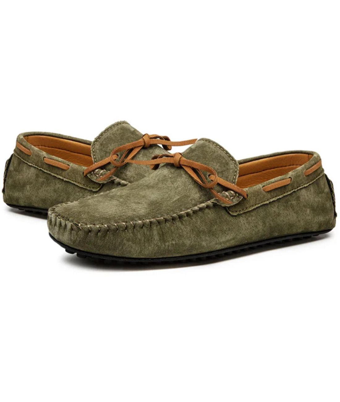 Adote um estilo elegante e discreto com nossos mocassins de camurça verde para homem