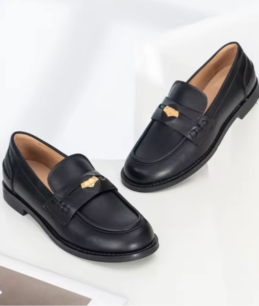 Dodajte svojmu šatníku nádych sofistikovanosti s našimi čierne mokasíny s hranatým podpätkom. Tieto nízke topánky s rafinovanými zlatými detailmi na zvršku stelesňujú dokonalé spojenie pohodlia a mestskej elegancie. Rafinovaný dizajn týchto mokasín sa ľahko hodí ku všetkým vašim ženským outfitom.