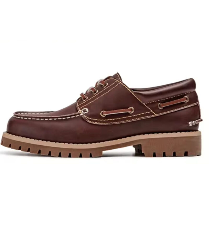 Tieto topánky sa vyznačujú pravou hnedou kožou zdobenou bočné šnúrky. Tento starostlivý dizajn dokonale vystihuje podstatu námorného štýlu, ktorý preklenul desaťročia.