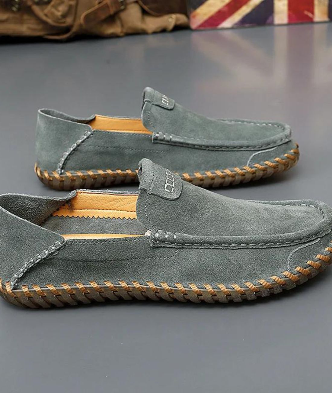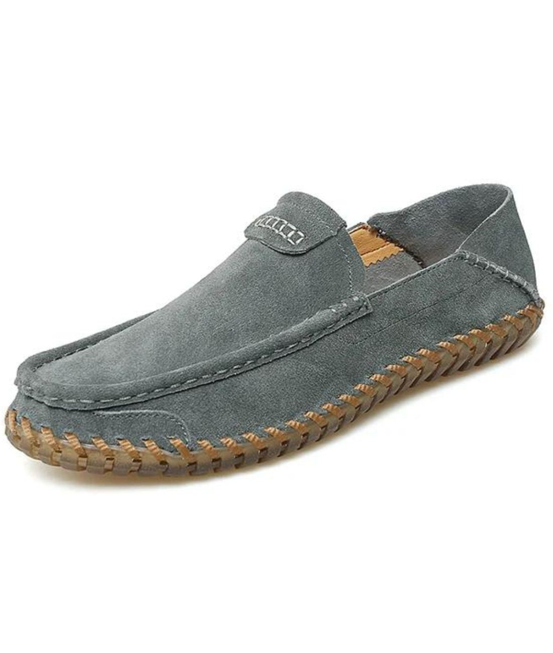 Objavte tieto mokasíny s ležérnym dizajnom loafer, ktoré sú ideálne pre elegantný vzhľad bez námahy. Vyrobené z pravého semišu, ich nadčasový šedo-zelený odtieň prináša nádych nenápadnej sofistikovanosti. Plochá podrážka z ťavej gumy s výškou 1 cm zaisťuje optimálnu priľnavosť na všetkých povrchoch a ponúka výnimočný komfort počas celého dňa. Kráčajte s istotou a pohodlím v týchto všestranných topánkach!